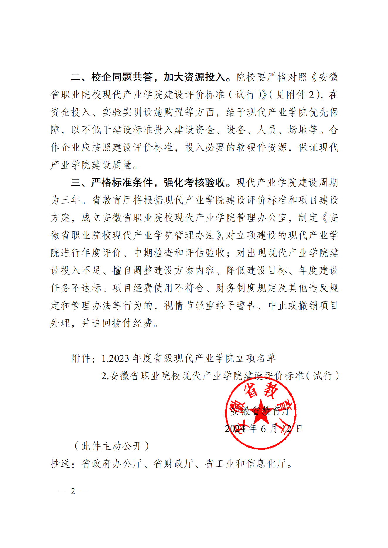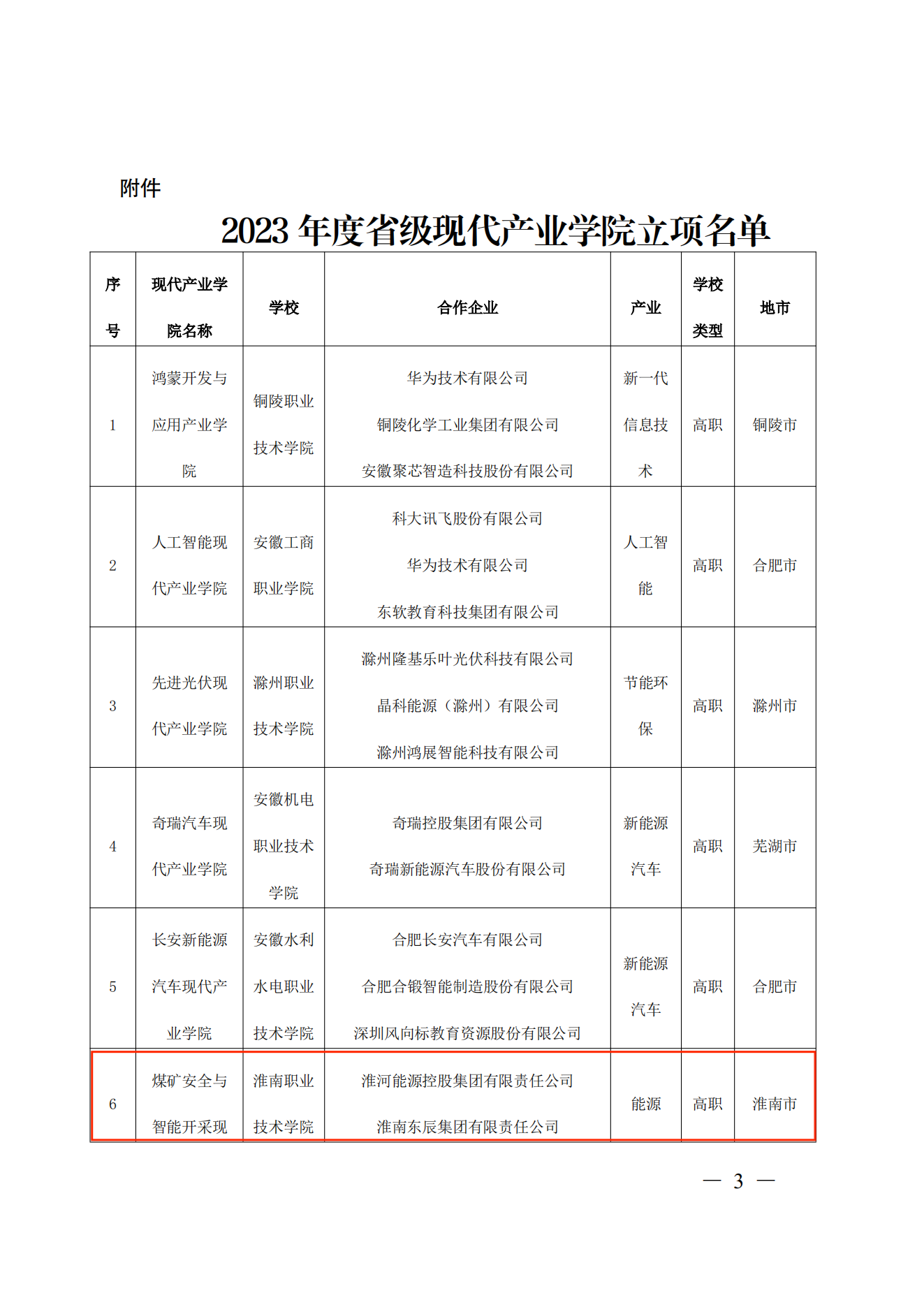 近日,安徽省人民政府办公厅、安徽省教育厅相继下发了《安徽省人民政府办公厅印发关于加快推进职业院校现代产业学院建设实施方案的通知》(皖政办秘〔2023〕60号)、《安徽省教育厅关于开展 2023 年省级现代产业学院申报建设工作的通知》(皖教秘高〔2023〕177号),学校积极响应文件要求,组织我院根据我校煤炭职教特色进行申报。